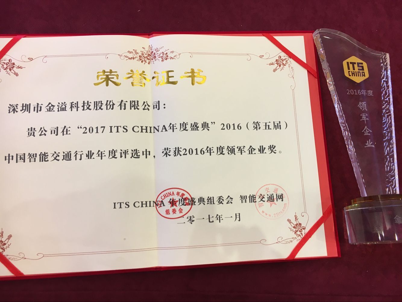 自ITS CHINA年度盛典开创以来,金溢科技连续被评为智能交通行业年度领军企业,此次更是一举获得3项荣誉,是智能交通业界对金溢科技2016年取得新高度、新成绩的大力认可和奖励。