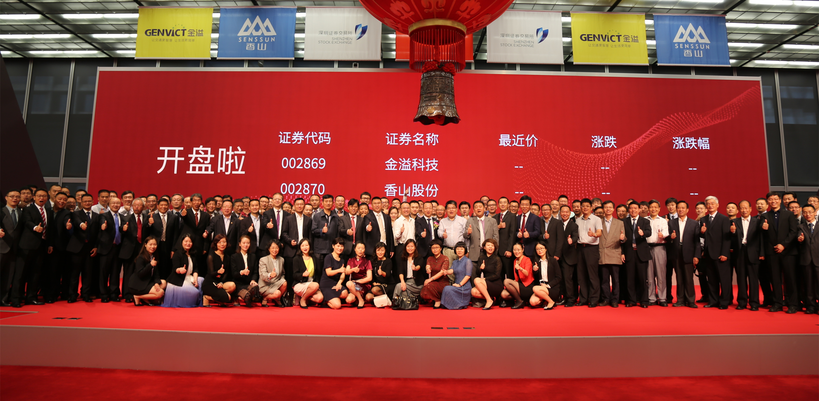 深圳市政府副秘书长张纪青女士、国信证券副总裁廖亚滨先生、金溢科技董事长罗瑞发先生共同敲响开市宝钟
