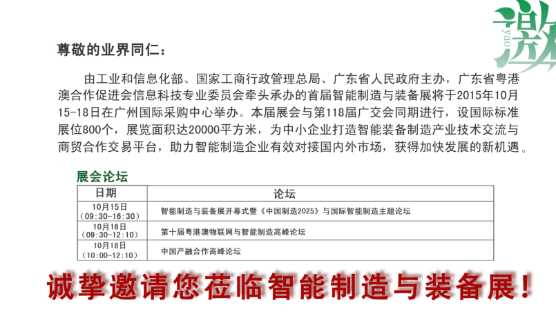 2015智能制造与装备展邀请函广东省数字广东研究院