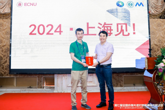 大会闭幕式由大会组委会主席、国际宇航科学院院士、广州大学王晋年教授主持,大会主席中科院空天信息创新研究院副院长张兵研究员代表大会组委会作了总结致辞并为上届承办单位宁波大学颁发了组织工作卓越奖,中国空间学会副秘书长杨一德研究员、中国遥感委员会秘书长张立福研究员和南京大学杜培军教授为赞助商颁发感谢证书,中国科学院院士童庆禧、中国科学院院士薛永祺为各分论坛优秀报告22名获得者颁发优秀报告奖。之后进行了精彩的第八届申办单位现场竞选,华东师范大学将在上海承办第八届全国成像光谱对地观测学术研讨会,中国地质大学(武汉)将在武汉承办第九届全国成像光谱对地观测学术研讨会,闭幕式现场充满愉悦氛围。随后,广州大学地理科学与遥感学院副院长杨现坤教授与华东师范大学通信与电子工程学院副院长李庆利教授进行第八届全国成像光谱对地观测学术研讨会主办权的交接仪式,大会组委会主席王晋年教授宣布大会闭幕,来年相约上海。