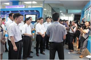7月13日上午,广东省副省长陈云贤率调研组到广东省数字广东研究院开展“改善创新环境行动成果”专题调研考察。调研组由省政府、省科技厅、省发展改革委员会、省教育厅、省财政厅、省人力资源社会保障厅、省质监局、省知识产权局、省金融办等单位的有关领导组成。市委常委、广州开发区管委会主任、萝岗区委书记凌伟宪等领导陪同。全国人大外事委副主任、广东省科协主席、原省人大常委会主任卢钟鹤一同到研究院考察与交流。