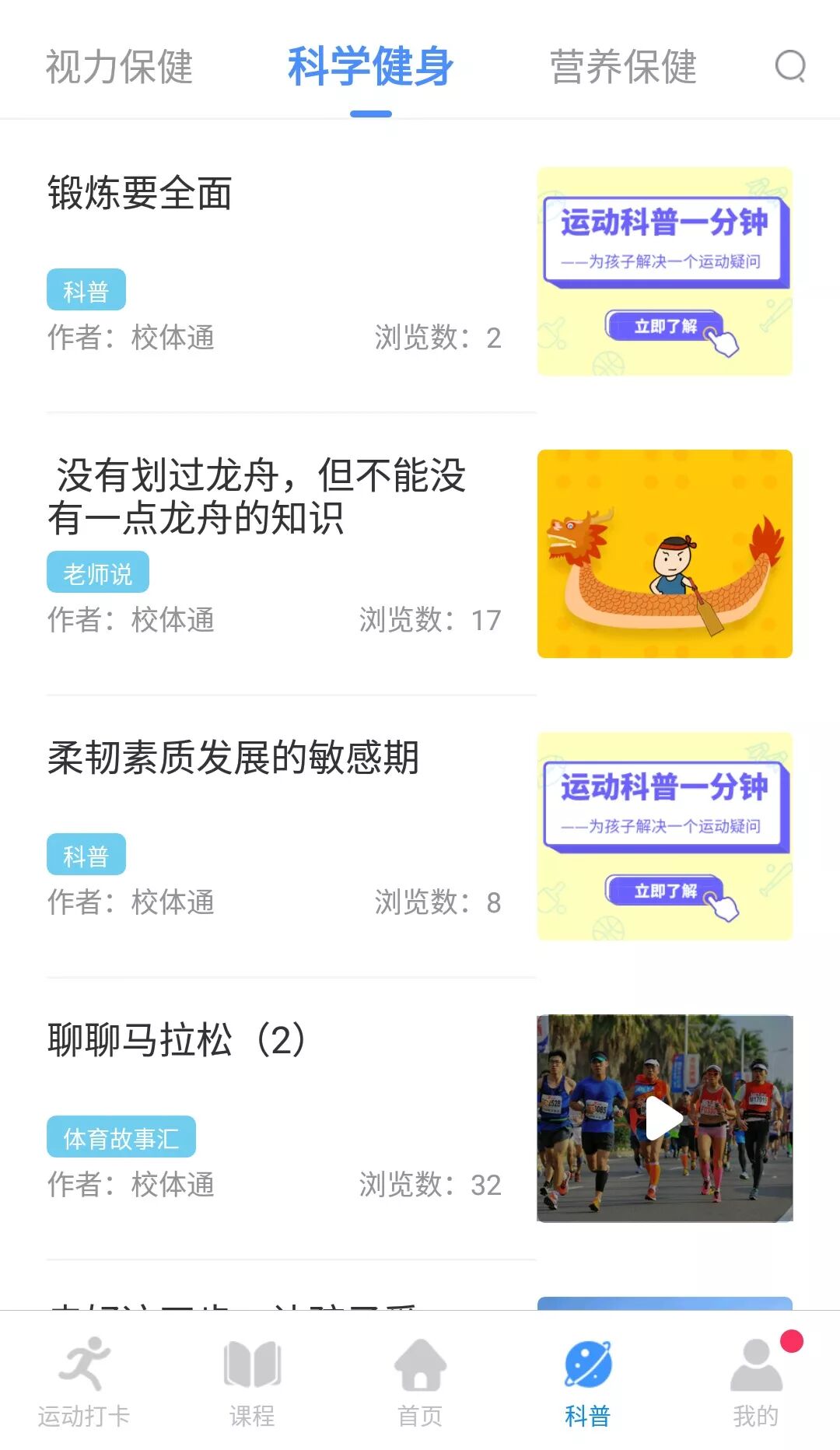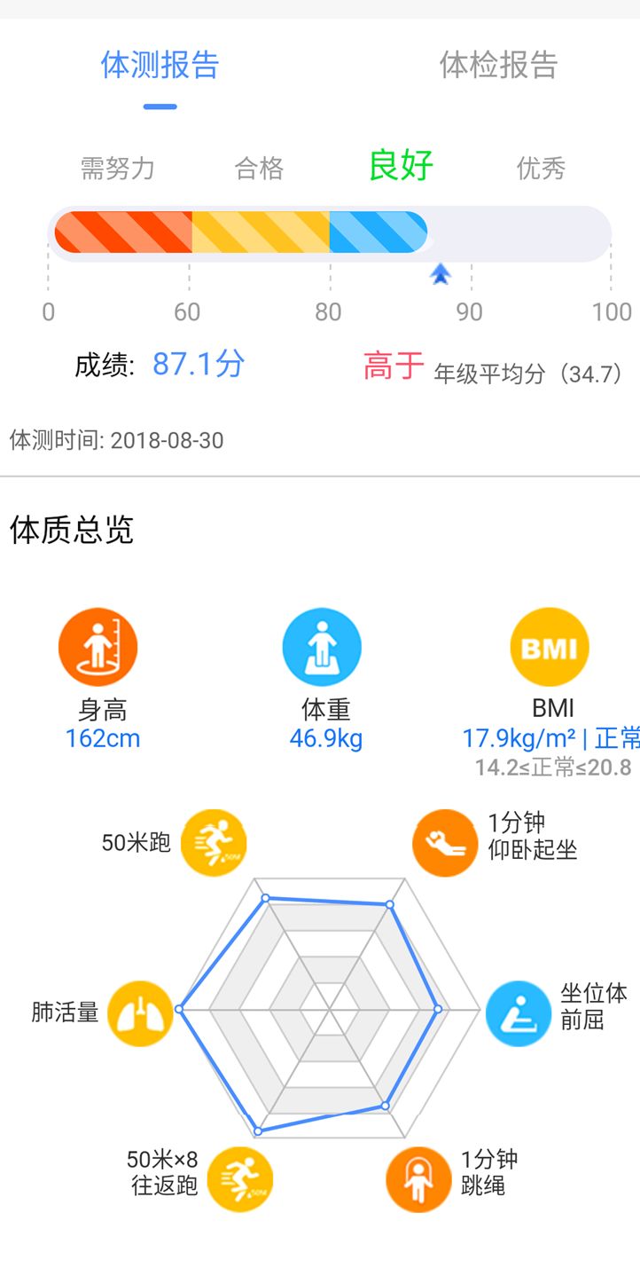 校体通家长端APP是校体通(青少年体质健康智能管理平台)在校园智慧体育、青少年体质提升解决方案上的重要一环,为广大学生与家长提供科学、便利、高效的运动教学内容和个性化服务。 学生可以在校体通家长端APP上收取到智能推送的贴合中小学体育教学大纲、匹配个体体质特征的个性化运动指导方案、体考专项提升课程与个性化体育作业,跟着“真人专业演示视频+详细的图文讲解”学习,在课后轻松锻炼,科学提升。 既不用担心动作出错,又无需家长费心指导,学生完成锻炼后,还能看到自己在班级、学校的运动排名,让课后锻炼更具趣味性,有助于养成学生良好的运动习惯。 家长可以通过校体通家长端APP,获取学生的课堂运动数据、体质分析报告、个性化运动指导方案等,及时了解孩子最新体质状况和在校运动表现。 校体通家长端APP上还有涵盖青少年运动、饮食营养、生活安全等方面的海量科普文章,帮助学生与家长掌握科学运动知识和方法,让家长更好地陪伴孩子开展课后锻炼。
